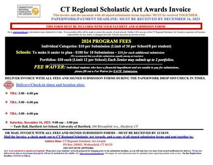 Deliver CT Payment Form, check made out to CT Regional Scholastic Art Awards, and